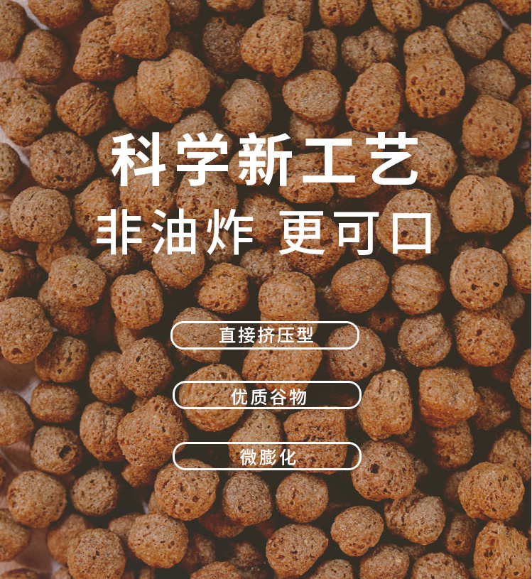 科学新工艺 直接挤压型 非油炸不上火 不但保留了谷物的营养 而且口感酥脆蓬松 代餐饱腹无负担